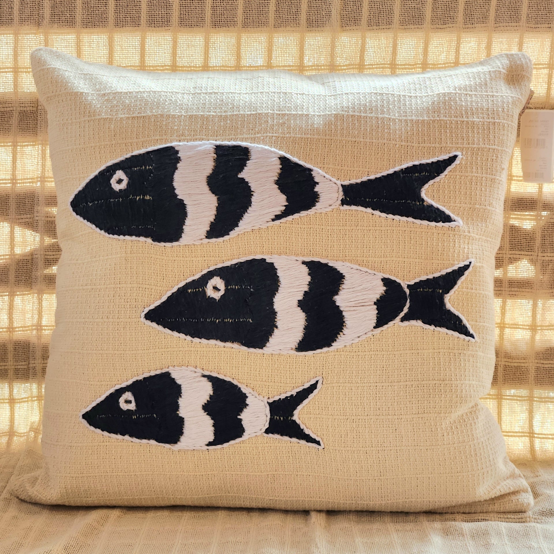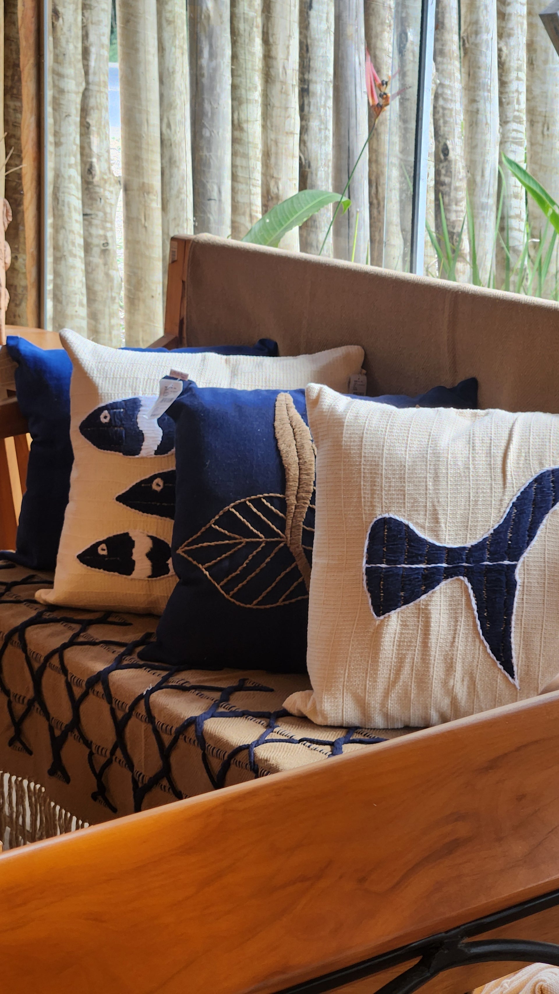 "Adicione um toque artesanal e sofisticado à sua decoração com a Capa Bordada Peixes 50x50. Feita à mão com a técnica de bordado santa luzia, cada detalhe é cuidadosamente executado, trazendo elegância e originalidade ao seu ambiente. O item perfeito para uma casa com personalidade."