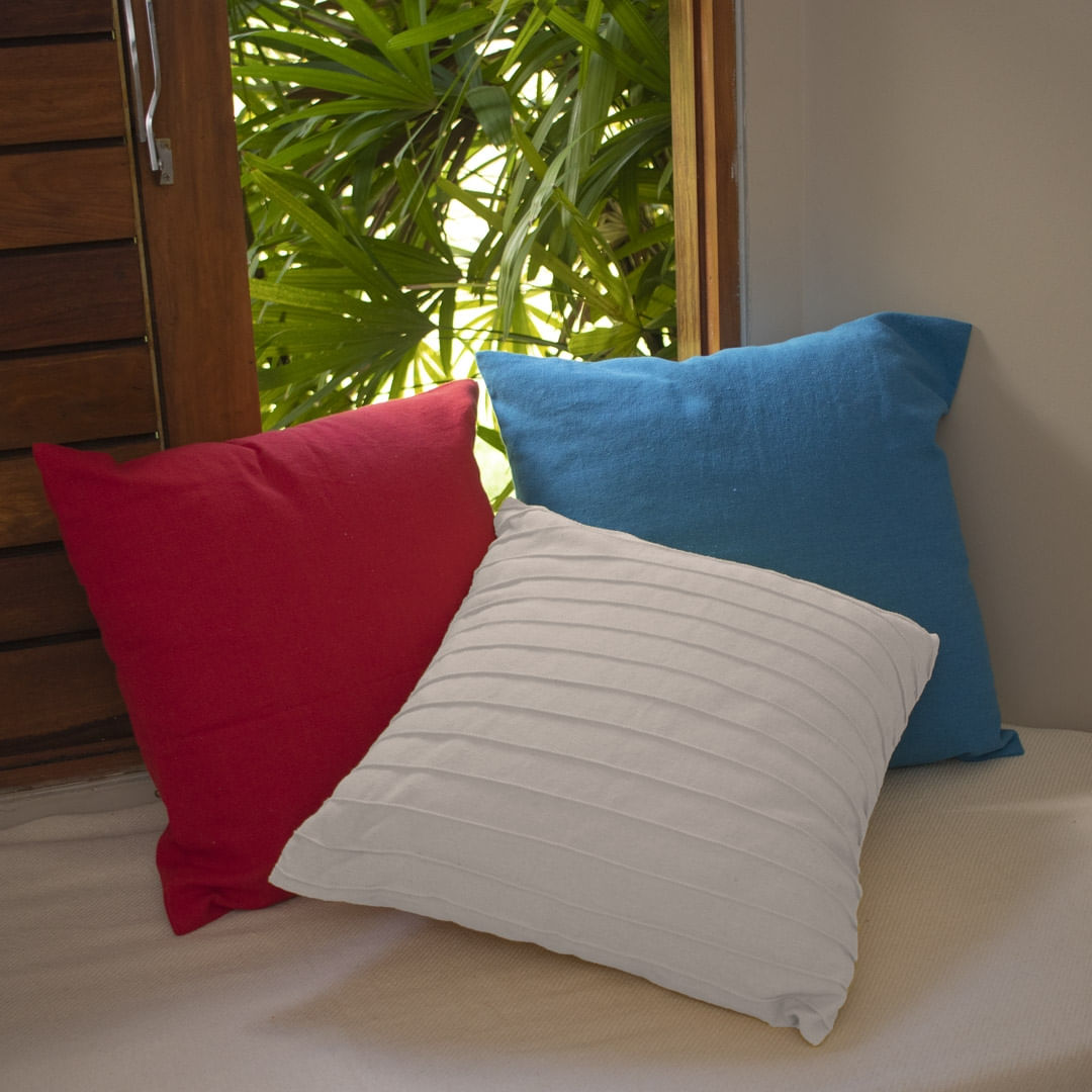 Dê um toque de charme e aconchego ao seu lar com esta capa de almofada drapeada! Feita com algodão 100% reciclado, ela é super macia e dispensa tingimentos, cuidando do planeta. Seu design elegante e fechamento em zíper garantem praticidade e um visual impecável. Transforme seu ambiente com estilo e sustentabilidade!