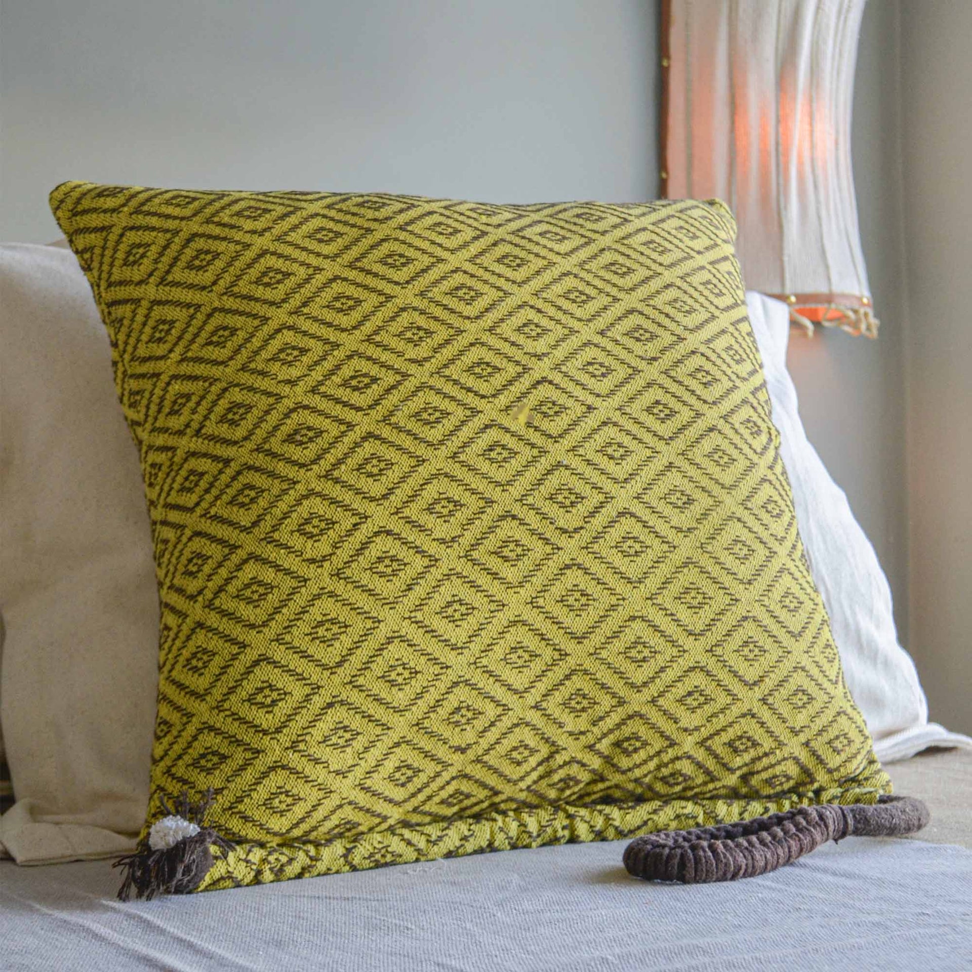 Dê um toque de sol e consciência ecológica ao seu lar com esta capa de almofada girassol! Feita a partir de um processo de reciclagem inovador, ela transforma sobras de algodão e garrafas PET em puro charme, economizando água e energia. Cada nó é cuidadosamente feito à mão por artesãos talentosos do Sertão da Paraíba, garantindo uma peça única e cheia de história. É a escolha perfeita para quem busca beleza, conforto e um impacto positivo no planeta.
