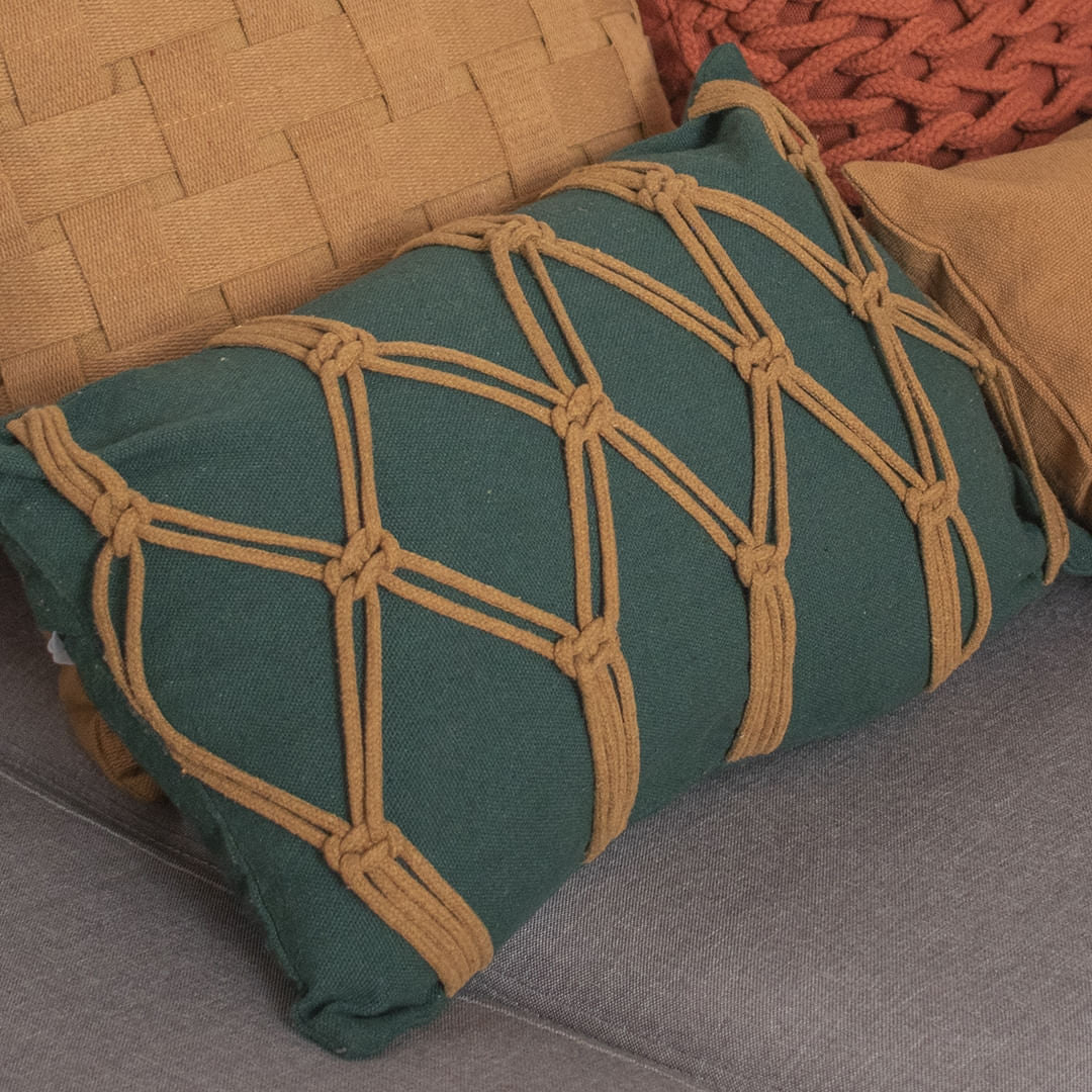 Dê um toque de magia ao seu espaço com a Capa de Almofada Trancelim Macramê! Essa belezinha é feita com tecido plano reciclado verde musgo e um charmoso acabamento artesanal em macramê, usando trancelim caramelo. Perfeita para adicionar cor e textura, ela possui um prático fechamento em zíper. Atenção: o enchimento não está incluído, mas a diversão é garantida!