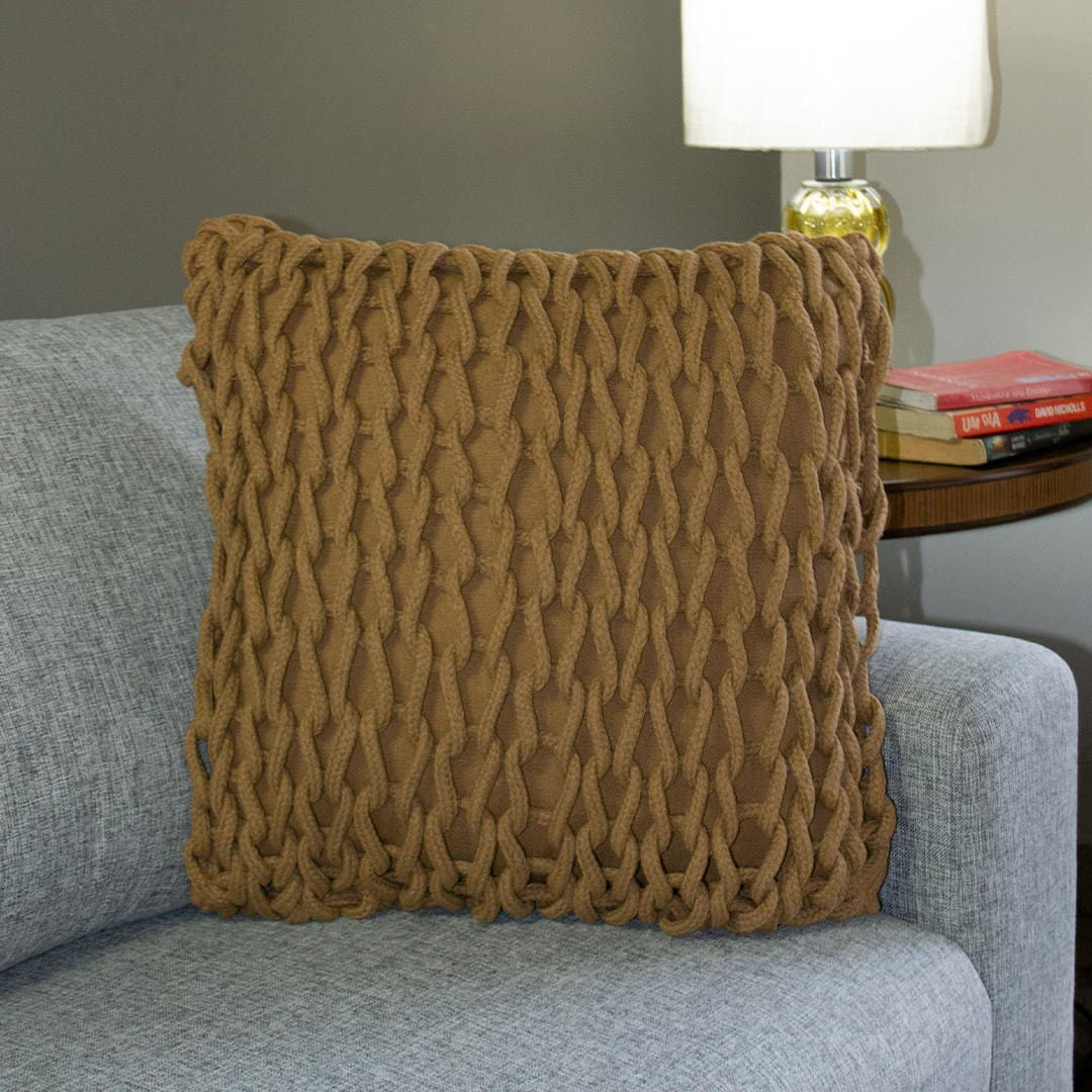 Dê um toque de charme e aconchego ao seu cantinho com esta Capa de Almofada Ponto Crochê! Feita com carinho, ela usa tecido reciclado na vibrante cor telha e um macro crochê que é puro estilo. Sem enchimento para você escolher o seu preferido, e com zíper prático para facilitar o dia a dia. Uma peça artesanal que celebra a beleza sustentável e o conforto!
