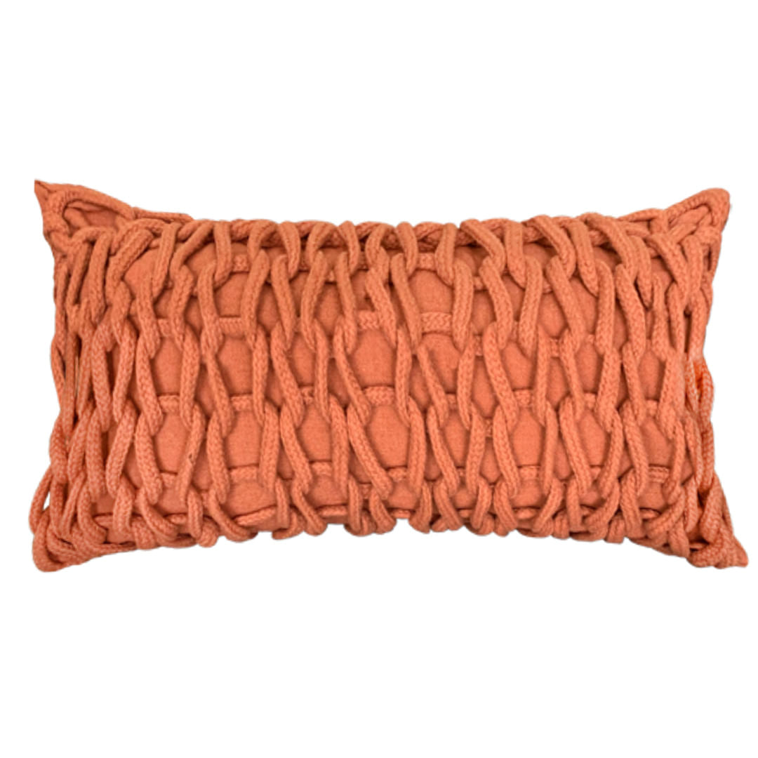 Dê um toque de cor e sofisticação ao seu cantinho com esta capa de almofada única! Feita com tecido reciclado na charmosa cor telha e um deslumbrante acabamento em macro crochê, ela é puro charme. O crochê artesanal transforma fios contínuos em uma obra de arte têxtil para seu sofá. Com fechamento em zíper, é prática e não acompanha enchimento, perfeita para personalizar seu conforto.