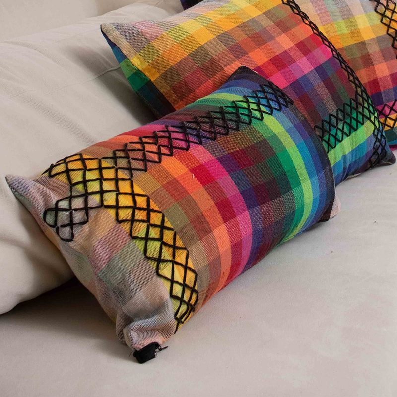 A Capa de Almofada Sertões é pura alegria! Seu design vibrante mistura listras e xadrez em um tecido reciclado com alto relevo, adicionando um toque divertido e sustentável ao seu lar. Com fechamento em zíper, ela é super prática para o dia a dia. Ah, e lembre-se: o enchimento não vem junto, mas a beleza é garantida!