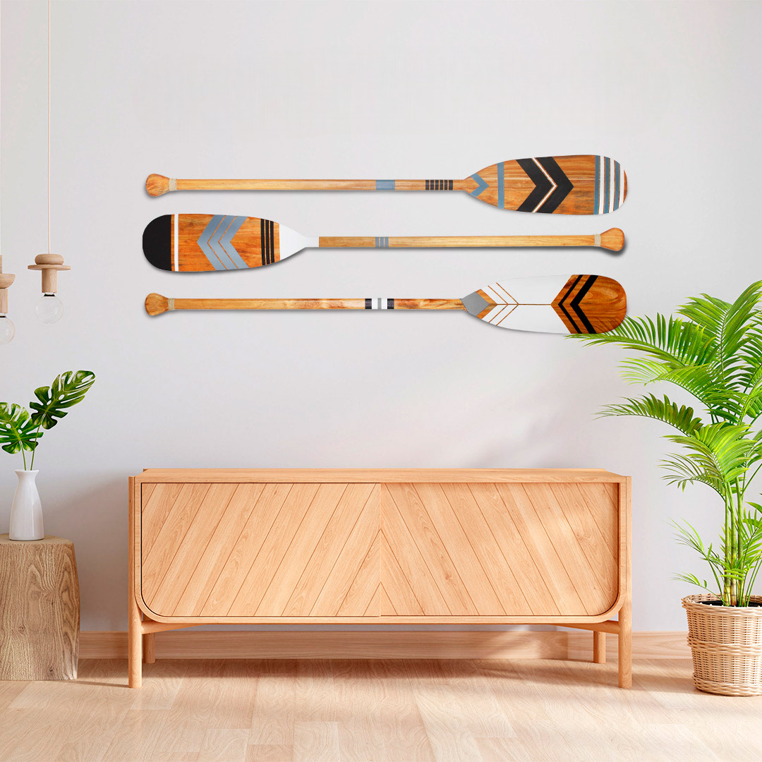 Prepare-se para transformar sua casa com este trio encantador de remos decorativos! Cada peça é uma obra de arte tribal, esculpida e pintada à mão em madeira natural, trazendo um toque de aventura e tranquilidade. Perfeitos para pendurar na parede, eles infundem seu espaço com personalidade e uma energia étnica super especial. Dê um mergulho na decoração autêntica e vibrante que só a Casa Tukã oferece!