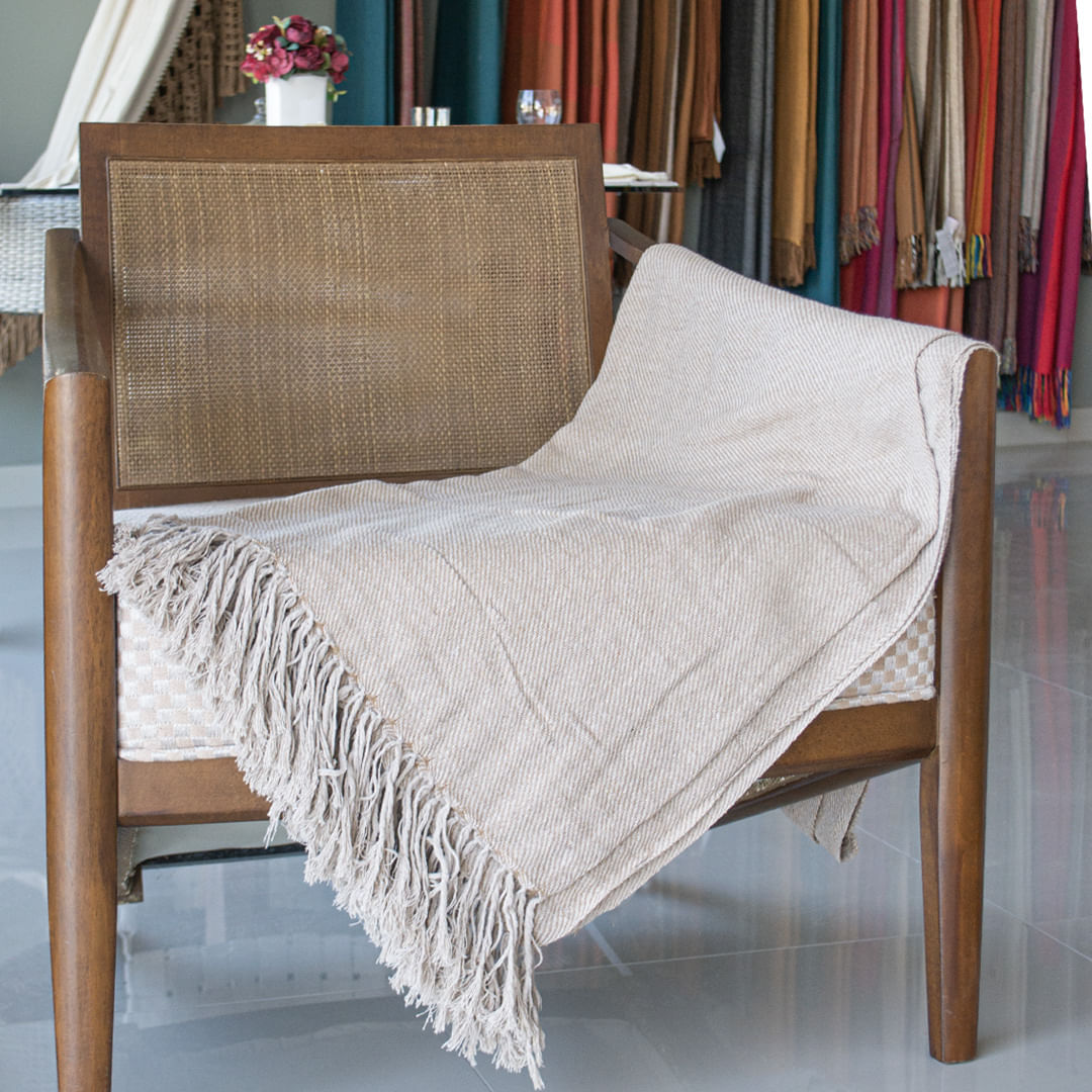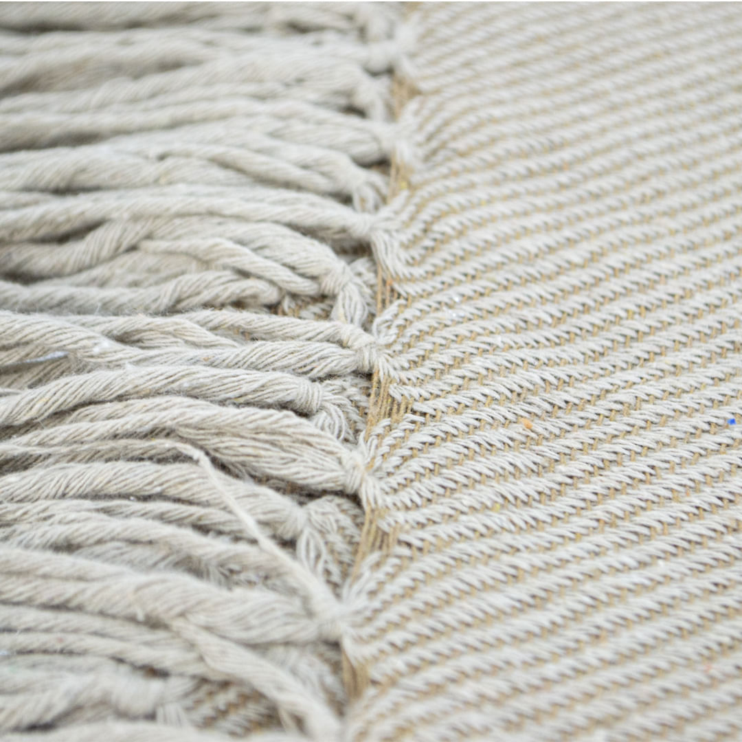 A manta é um acessório que adiciona charme à decoração de salas, escritórios e quartos. Nossa Manta Super Nozinho tem variedade de cores em tecido leve reciclado, que não agride ao meio ambiente. O acabamento é todo em nós feitos à mão, com franjas. Composição: 80% algodão + 20% Poliéster (fio de garrafa PET). Dimensões: 2,50m x 2,00m. Encolhimento: Até 10%. Cor: Areia. É perfeita para quem busca um toque especial em sua decoração.
