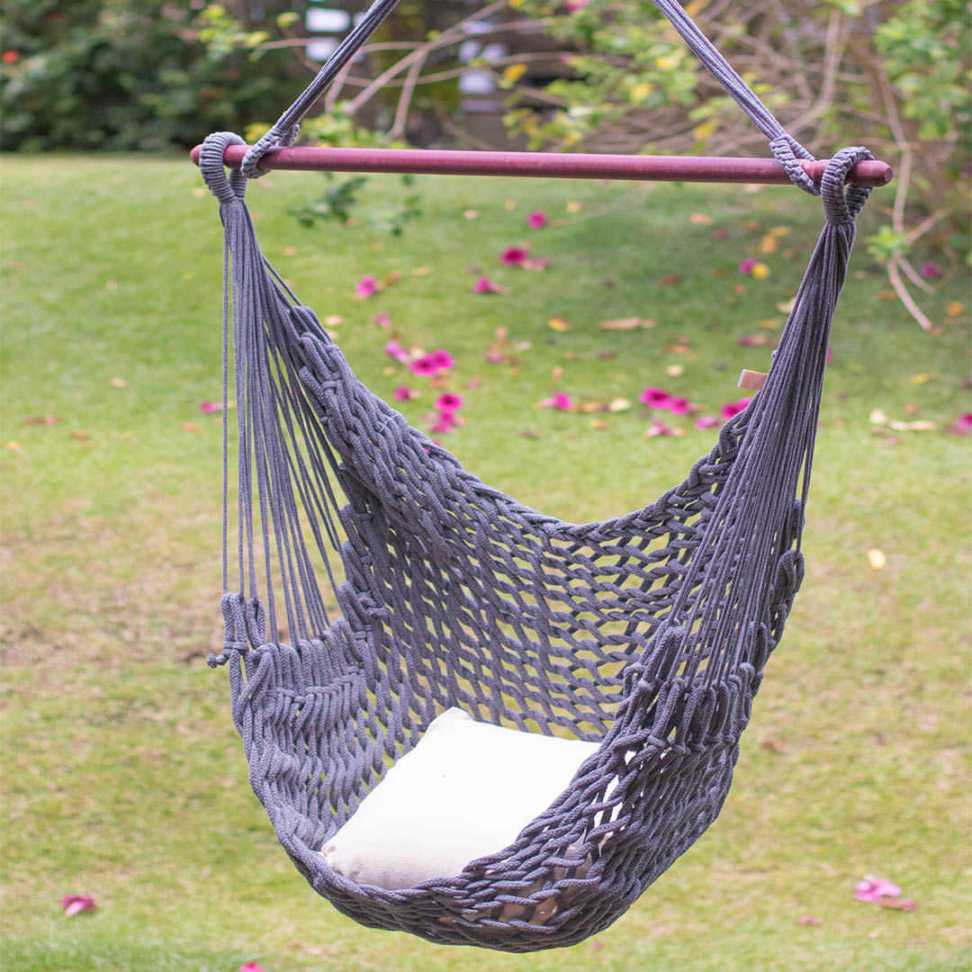 A Rede Cadeira Corda é um trabalho 100% manual de cordas entrelaçadas e tecido ecológico, perfeita para qualquer ambiente. Com uma capacidade de 120kg, é ideal para relaxar. A composição é de 80% algodão e 20% poliéster, com dimensões de 1,40m x 0,55m. Além disso, a madeira tem uma dimensão de 1,25m, tornando-a uma opção confortável e espacosa. Com uma cor cinza elegante, é um complemento perfeito para qualquer decoração.