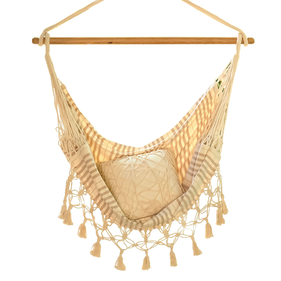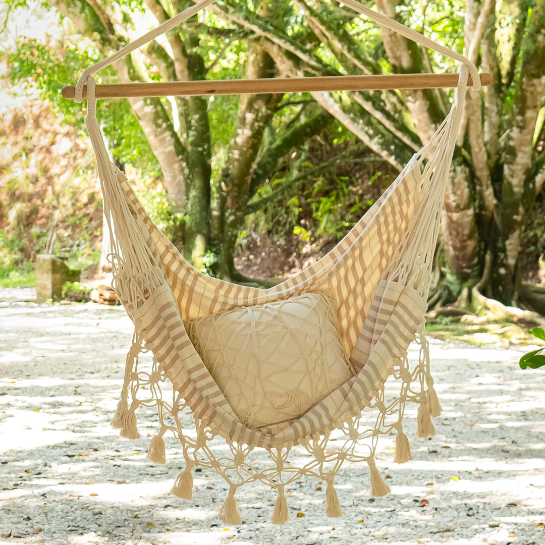 A Rede Cadeira Leveza é uma escolha ideal para quem busca transformar qualquer ambiente em um refúgio de tranquilidade e beleza. Feita à mão com materiais de alta qualidade, sua trama delicada e a leveza de seu design proporcionam uma sensação de aconchego inigualável. Ela combina elegância com funcionalidade e oferece um toque de estilo e exclusividade ao espaço. Combinando conforto e um design artesanal encantador, a Leveza é a peça que faltava para seu ambiente ganhar um ar de paz e sofisticação. É perfeita para varandas, jardins ou até mesmo dentro de casa.