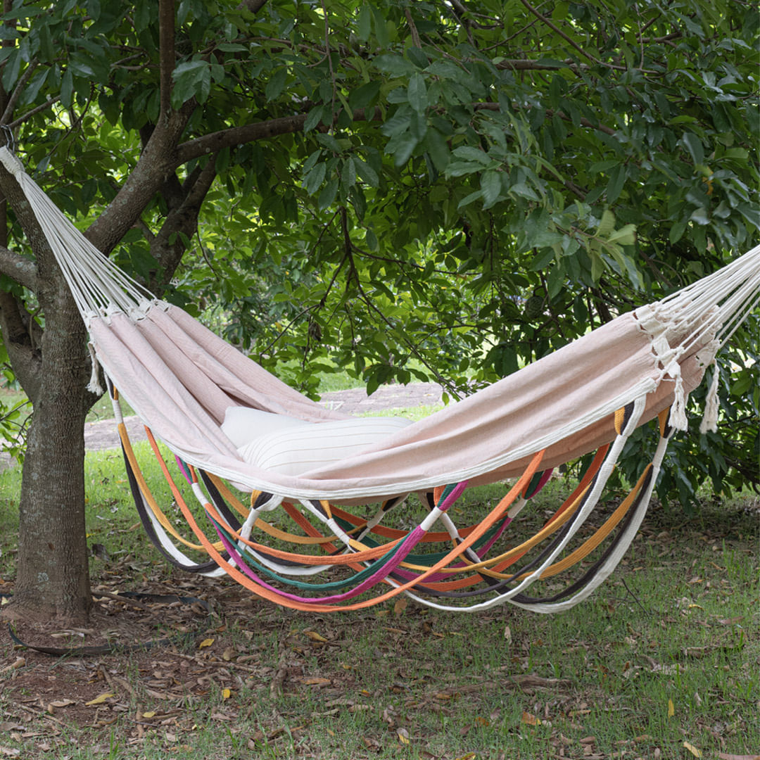 A Rede de Descanso Grafismo é uma peça que ilumina o ambiente com sua estética vibrante e contemporânea, proporcionando um espaço de descanso cheio de personalidade e alegria. Suas ondulações gráficas, tecidas cuidadosamente em fios de tom pêssego, são um convite ao bem-estar e à criatividade. Com uma composição de 80% algodão e 20% poliéster, esta rede é perfeita para momentos de relaxamento. A Rede de Descanso Grafismo também oferece detalhes feitos à mão e bordados em curvas que refletem a energia da abundância e o espírito de colaboração. Além disso, o tecido é suave e perfeito para relaxar.