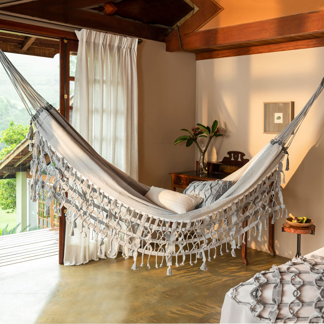 Essa rede de descanso é um tributo à natureza, inspirada nos mangues litorâneos, com detalhes artesanais que simulam o movimento das raízes. Oferece uma experiência de descanso conectada à natureza, onde o artesanato manual se encontra com a sustentabilidade. Com composição de 80% algodão e 20% poliéster, é uma escolha ideal para quem busca beleza e significado. É perfeita para criar um espaço de relaxamento com um toque de autenticidade e respeito ao meio ambiente. Além disso, é feita com cuidado em cada ponto, garantindo um produto de alta qualidade.