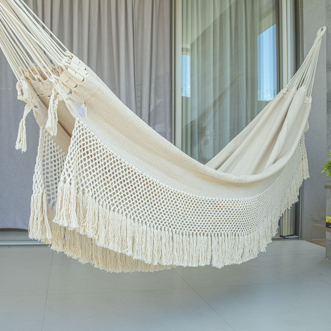 Você está procurando por um local perfeito para relaxar? Esta rede de descanso é feita de algodão natural colorido e orgânico, garantindo uma experiência de descanso confortável e saudável. Com uma capacidade de 180 kg e dimensões de 4m x 1,70m, é perfeita para qualquer ambiente. Além disso, os punhos, caréus e mamucabas são feitos à mão, tornando cada rede única. Compre agora e desfrute de um descanso merecido!