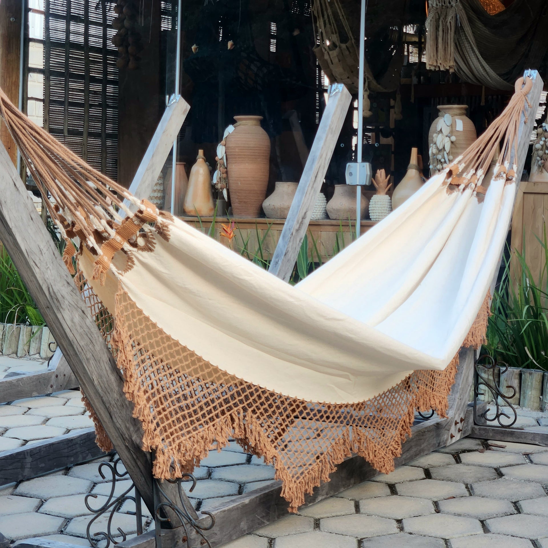 A Rede King Cru C/ Caramelo oferece uma varanda reforçada, mede 3,80cm que pode se estender até 4 metros. Com seu design lindo e resistente, é perfeita para um descanso tranquilo e seguro. Aproveite seus momentos de lazer com essa rede de alta qualidade e durabilidade.