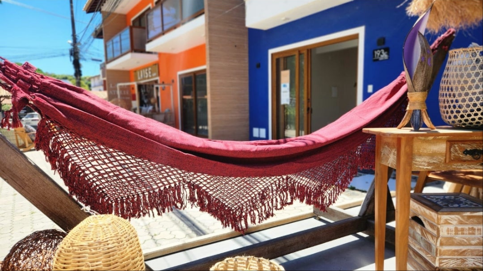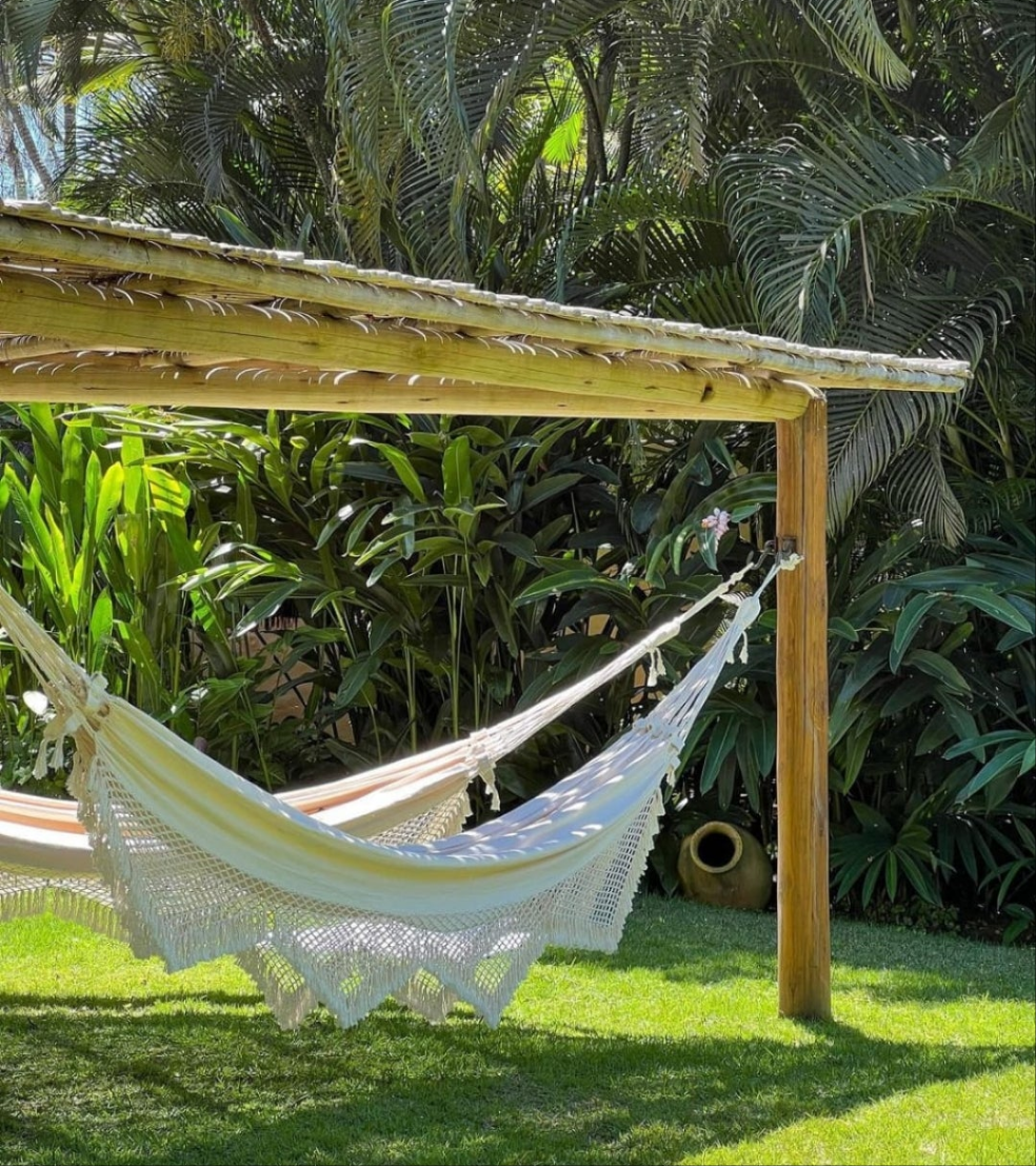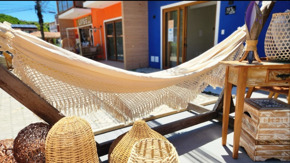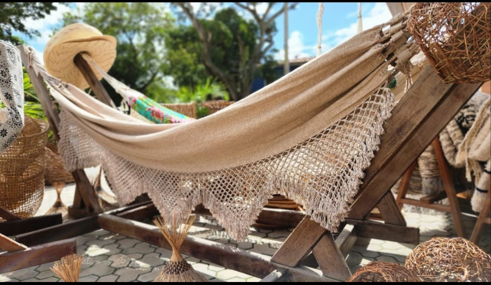 Rede King super espaçosa e resistente. Tecido e algodão e varanda produzida de forma manual.