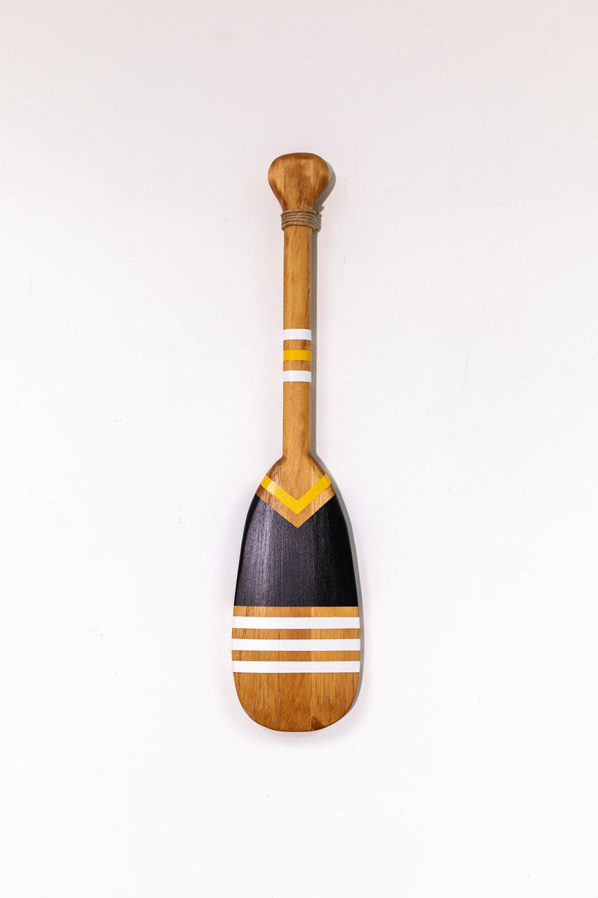 Transforme seu espaço com este remo decorativo tribal, uma peça artesanal que irradia beleza ancestral. Cada detalhe é meticulosamente pintado à mão, exibindo grafismos únicos em madeira natural trabalhada em marchetaria. Ele é perfeito para adicionar um toque de personalidade vibrante e energia cultural à sua casa. Pendure-o na parede ou apoie-o para uma atmosfera instantaneamente estilosa e tranquila.