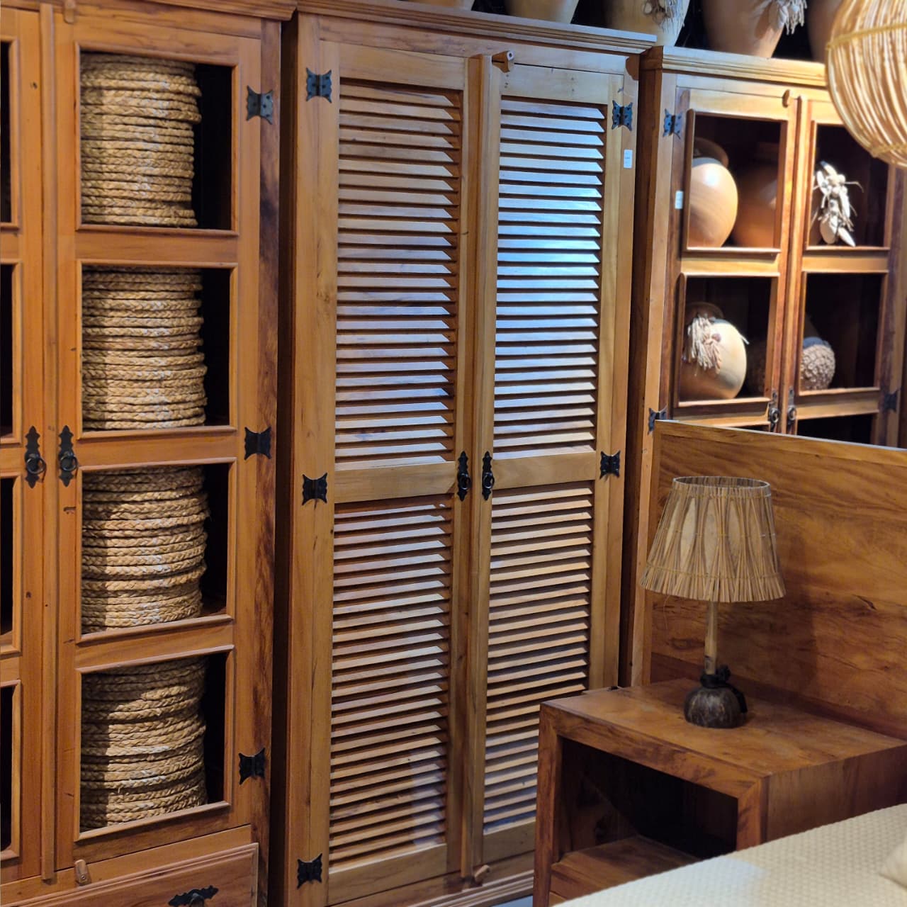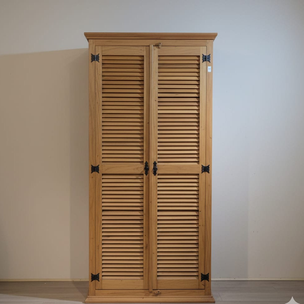 Este armário/guarda-roupa é feito de madeira peroba rosa e possui um design veneziano nas portas. Com um visual encantador, é a opção perfeita para quem deseja uma peça única e elegante para guardar suas roupas e acessórios. A madeira de peroba rosa adiciona um toque rústico e charmoso ao ambiente. Medidas: