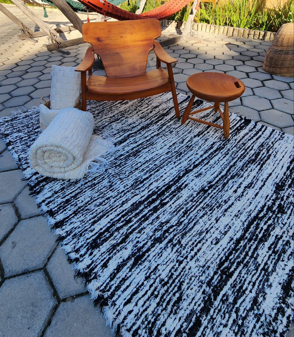 Tapete 100% algodão, macio, durável e de toque agradável. Ideal para dar mais conforto e charme a qualquer ambiente. Fácil de lavar e perfeito para salas, quartos ou banheiros.